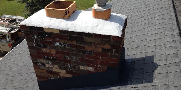 The flashing is the barrier between the chimney and the roof. It is also the source of 90% of chimney leak issues into the home. There are also several types of flashing.